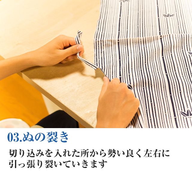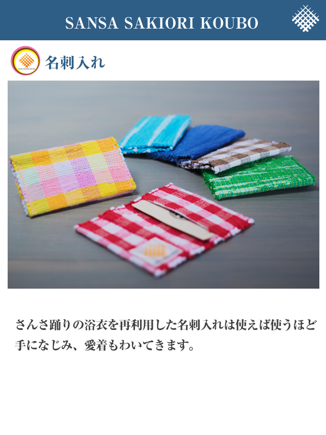 以前より“裂き織”と呼ばれる、古い布を裂き緯糸として織り直す日本古来のリユース技術がありました。「さんさ裂き織」は盛岡の夏の風物詩「盛岡さんさ踊り」の浴衣に着目しました。